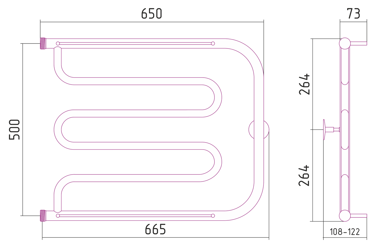 Полотенцесушитель водяной Стилье ТАНДЕМ 00016-5065 500х650