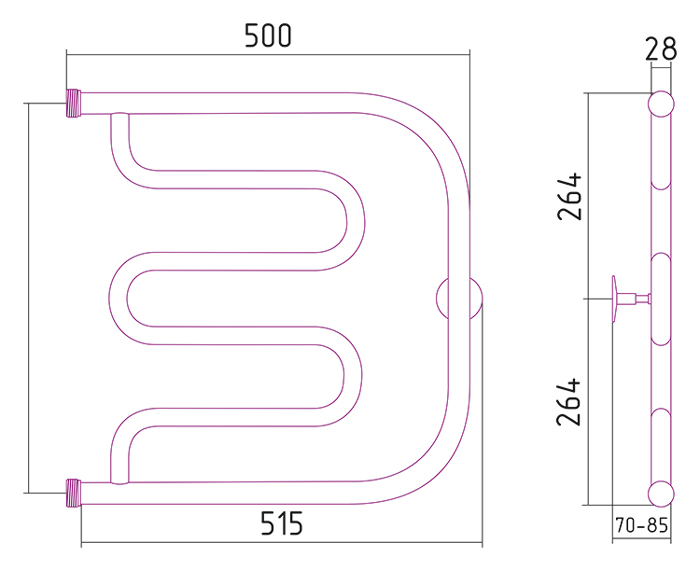 —Полотенцесушитель водяной Стилье ТАНДЕМ 500*500 резьба-сгон 1"