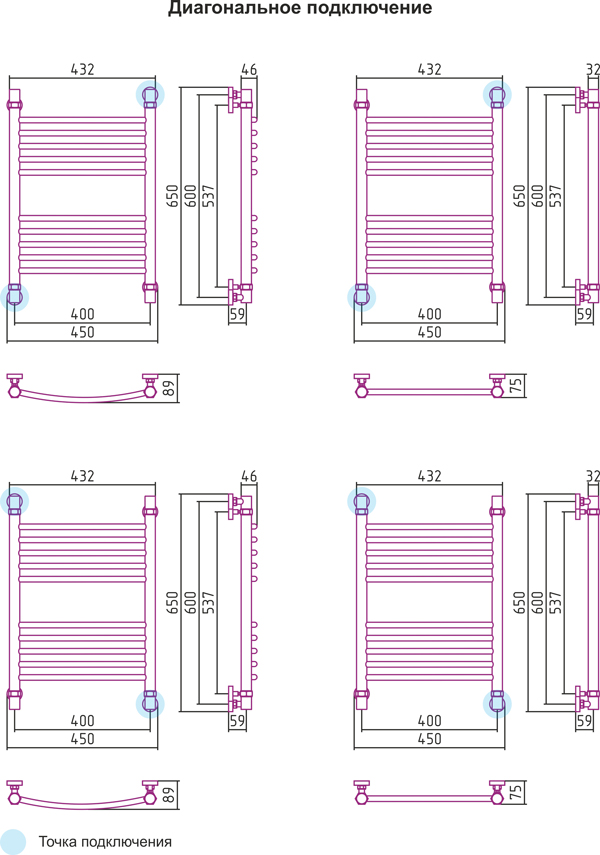 Диагональное подключение, см