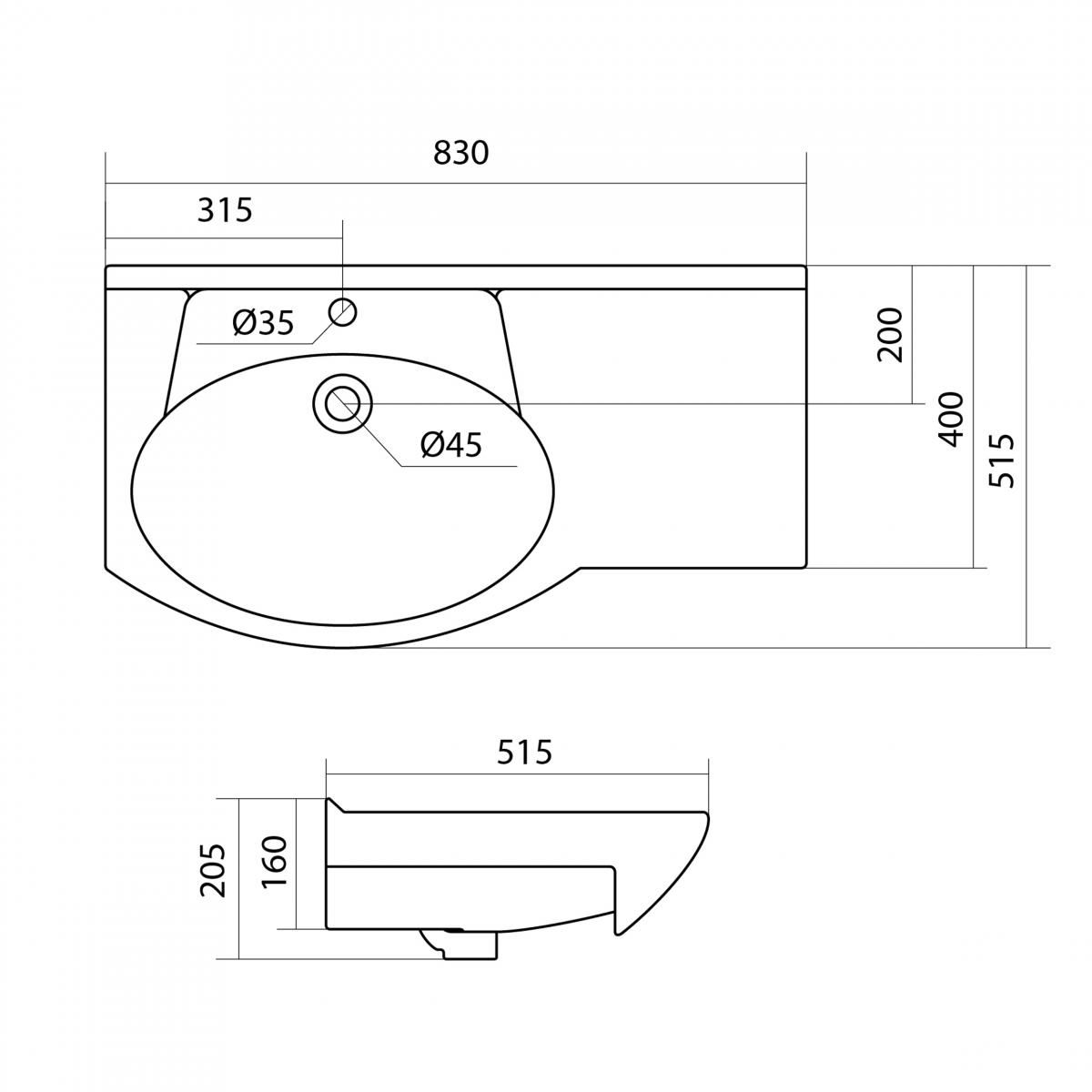 —Раковина Santek КОРАЛЛ 82 см. прав.