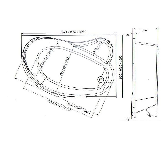 Ванна акриловая Mirsant ЯЛТА 140x90 см. правая