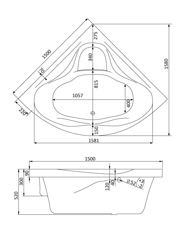 —Ванна акриловая угл. Santek САН-ПАУЛУ 150*150 см.